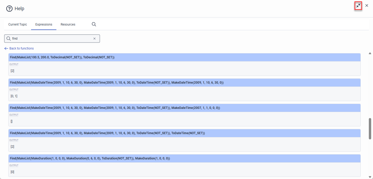 - Ausdrücke – Bietet detaillierte Informationen zu Funktionen, die Sie zum Erstellen von Ausdrücken verwenden können, einschließlich Syntax und Beispielen. Sie können die Ausdrücke für weitere Informationen.