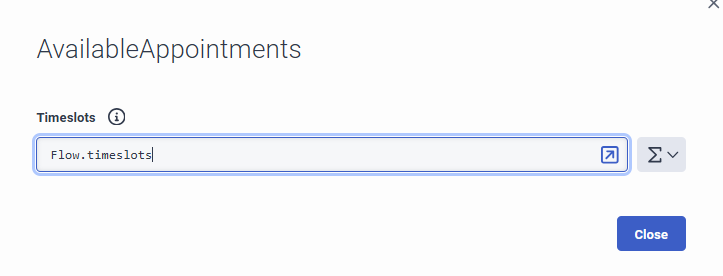 Flow.timeslots. - Unter Zuzuweisender Wert 1 , fügen Sie den Ausdruck hinzu,