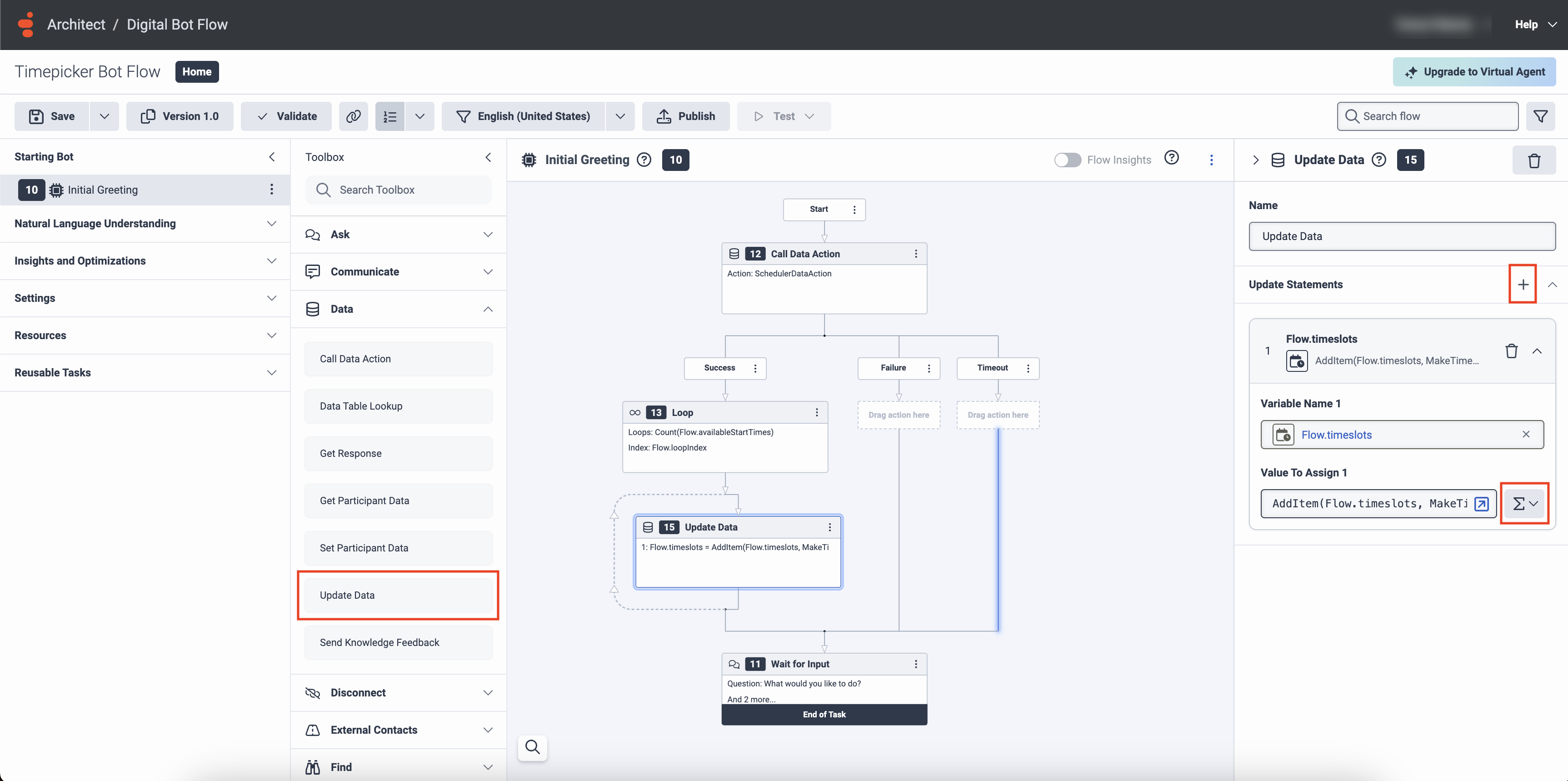 Gehen Sie wie folgt vor, um eine Datenaktion aus einem Architect-Botflow aufzurufen: